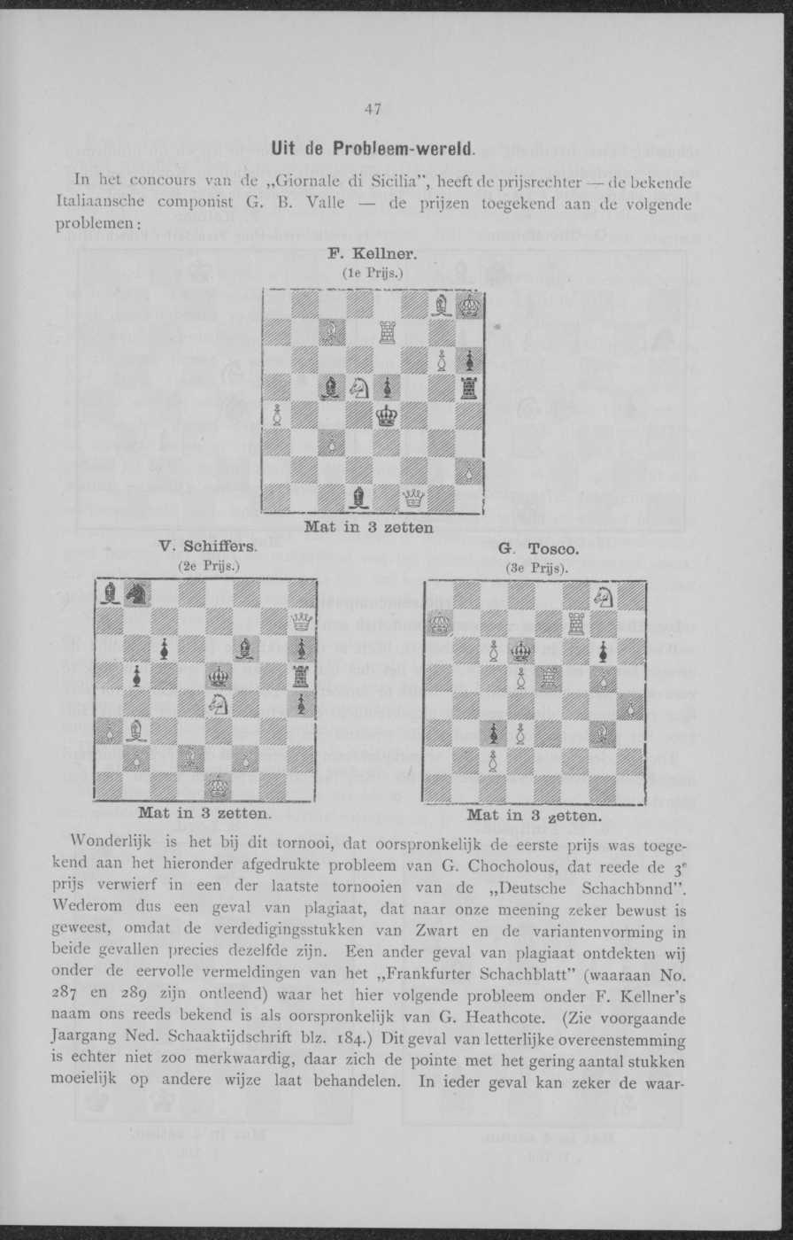 Verder verzoekt de redacteur aan alle Nederlandsche schakers, hunne schaakportefeuilles te willen nazien of er zich nog partijen in bevinden, die der moeite waard zijn, ter eeniger tijd, te worden gepubliceerd en ze dan aan den Hoofdredacteur te willen opzenden. Elke bijdrage zal gretig aanvaard worden.