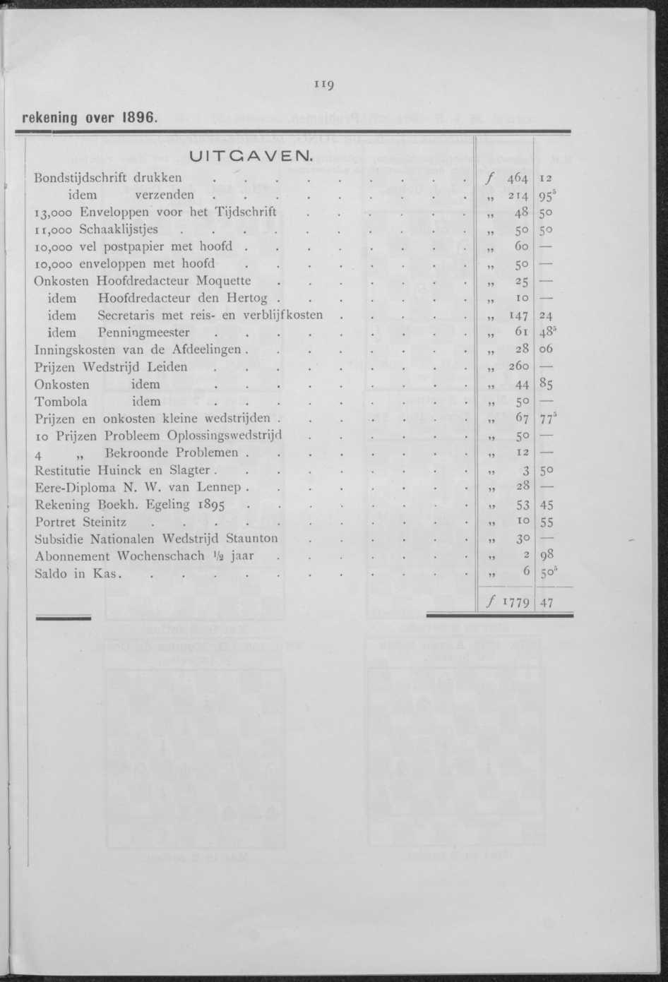 INHOUD: Wedstrijd te Dordrecht; Een verzoek; Correspondentie; Finantiëele Rekening over 1895; Voorloopige Finantiëele Rekening over 1896; Problemen; Oplossingen der eindspel-studies van A. Troïtzky ; Binnenland; Buitenland; Eindspelen; Twee eindspel-studies; Het paringstelsel-Deelman ; Verschillende partijen.