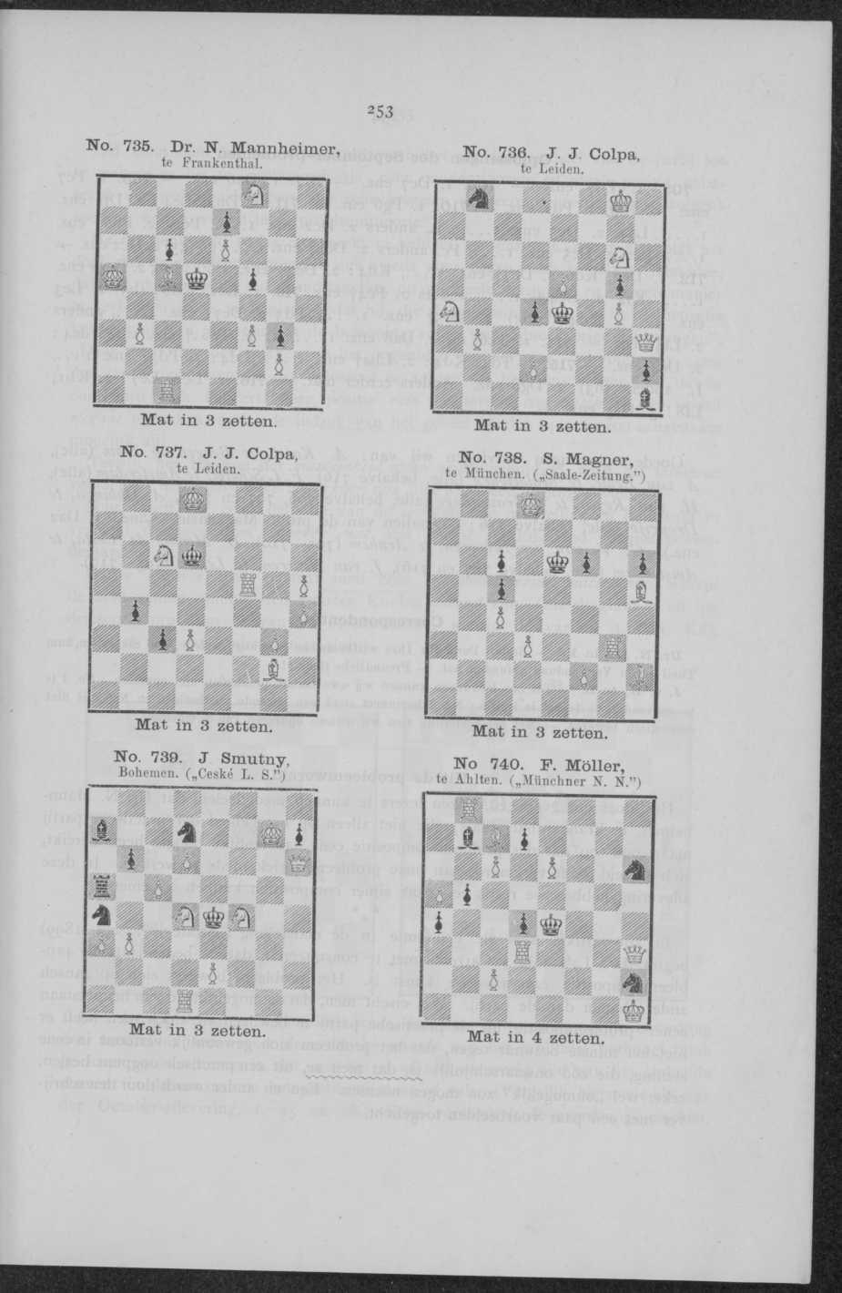 Het doet ons genoegen, onzen lezers te kunnen mededeelen, dat Dr. N. Mannheimer, te Frankenthal (Pfalz), die niet alleen op het gebied der practische partij maar ook op dat der probleemcompositie eene aanzienlijke hoogte heeft bereikt, zich bereid heeft verklaard, aan onze probleemrubriek mede te werken. In deze aflevering hebben we reeds een paar zijner compositien kunnen opnemen.