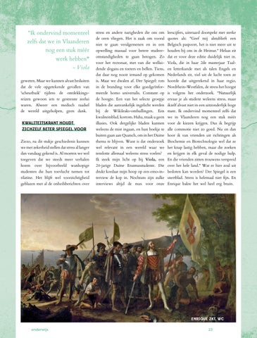 omstandigheden te gaan betogen. Zo dat er voor deze editie duidelijk niet in. voor het rectoraat, met van die wellui- Viola, die in haar 2de masterjaar Taaldende slogans en toeters en bellen. Tiens, en letterkunde met als talen Engels en dat daar nog nooit iemand op gekomen Nederlands zit, viel uit de lucht toen ze