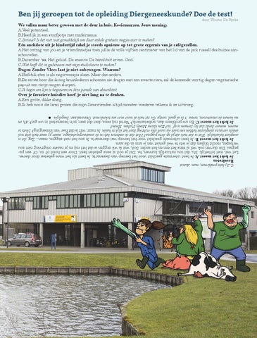 C.Jij hebt problemen, man. Autist. Resultaten Je hebt het meest A: Je bent uitermate geschikt voor het beroep van dierenarts. Je bent als het ware gebeten door dieren. Let wel, niet letterlijk. Nu, dat zou natuurlijk kunnen, he. Dat je ooit al eens gebeten bent. Door een hond of zo. Of een papegaai. Die durven ook wel al eens het een en het ander. Soit, wat ik wil zeggen is dat het mij en je naaste omgeving niet zou verbazen, mocht blijken dat je iets te veel geniet van je arm in die aars. Je hebt het meest B: Je bent uitermate geschikt voor het beroep van dierenarts. Je zou het niet zeggen, maar... Zeg, dit is compleet belachelijk. Wat is dat toch altijd op deze pagina? Niet dat ik ambities heb in de amateurpsychologie, maar jij moet toch echt wel enkele serieuze complexen hebben om week na week elke richting door het slijk te halen. Ja maar, wat is dat hier van inmenging? Niets te maren, meneer denkt dat hij Jeroom is of zo? Een kleine Monty Python. Hmm? Je hebt het meest C: En uw probleem dan, ambetanterik? Vertel mij eens, doet dat zeer, zo’n bezemsteel in uw gat? Ah, en nu komen de invectieven, zenne. ’t Is al goed, ventje. Ge zit toch al weer over uw tekenlimiet. Onnozelaar. Insgelijks. ■ We vallen maar beter gewoon met de deur in huis. Koeienaarzen. Jouw mening: A.Veel potentieel. B.Heerlijk in een stoofpotje met madeirasaus. C.Serieus? Is het niet wat gemakkelijk om daar enkele gratuite mopjes over te maken? Eén anekdote uit je kindertijd rakel je steeds opnieuw op tot grote ergernis van je cafégezellen. A.Het ontzag van jou en je vriendinnetjes toen jullie de volle vijftien centimeter van het lid van de jack russell des huizes aanschouwden. B.December ‘44. Het geluid. De sneeuw. De banaliteit ervan. God. C.Wat heeft dit in godsnaam met mijn studiekeuze te maken? Dagen Zonder Vlees laat je niet onbewogen. Waarom? A.Biefstuk eten is als negerweesjes slaan. Maar dan anders. B.De eerste boer die ik nog bruinlederen schoenen zie dragen met een zwarte riem, zal de komende veertig dagen vegetarische pap uit een rietje mogen slurpen. C.Ik begin een lijn te bespeuren in deze parade van absurditeit. Over je favoriete huisdier hoef je niet lang na te denken. A.Een grote, dikke slang. B.Ik heb nooit die lama gezien die mijn Simsvrienden altijd moesten voederen telkens ik ze uitvroeg. door Wouter De Rycke