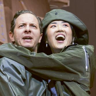 Ein irrwitziges Trio: Sophie Rois, Kotbong Yang und Trystan Pütter