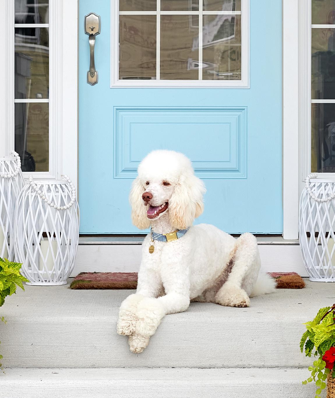 Cover | Mr. Darcy sitting on his front porch at Welches Pond. Door: 1-Panel 12-Light Smooth Fiberglass; Door Color: Sherwin-Williams Liquid Blue SW6779. 16 17 12 11 13 15 14 18 19