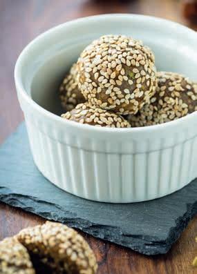 Die Haferflocken in eine Schüssel geben, einen Esslöffel Limettensaft beifügen und vermengen. Anschliessend die gehäckselte Masse aus dem Mixer untermischen und verkneten. Aus der Masse etwa zwanzig gleich grosse Kügelchen (ca. zwei Zentimeter Durchmesser) formen und im Anschluss im Sesam wälzen. Wenn alle Kügelchen fertig geformt sind, mindestens eine Stunde in den Kühlschrank stellen. Danach geniessen. Die Kugeln sind mindestens eine Woche lang im Kühlschrank haltbar.