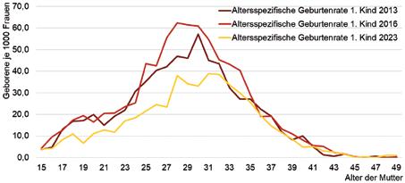 30 Jahren für ein erstes Kind. Bei Spätgebärenden, die ihr erstes Kind ab ca. 35 Jahren bekommen, ist hingegen kein Rückgang zu erkennen. Untermauert wird der Befund – dass sich vor allem jüngere Frauen seltener für ein Kind entscheiden - von den Ergebnissen der Leipziger Jugendstudie. Kinder zu haben oder eine Familie zu gründen ist nach den Befunden unserer Studie nicht mehr zentral für ein gutes Leben. Im Jahr 2010 gaben noch 78 Prozent der Schülerinnen und 69 Prozent der Schüler an, dass es ihnen (sehr) wichtig sei, Kinder zu haben. Im Jahr 2023 sank die Bedeutung auf 40 Prozent bei den Mädchen und 43 Prozent bei den Jungen. Das Bundesinstitut für Bevölkerungsforschung erklärt die sinkenden Geburtenraten vor dem Hintergrund aktueller Krisen. Der Bevölkerungsforscher Martin Bujard resümiert: „Der Krieg in der Ukraine, die gestiegene Inflation oder auch der fortschreitende Klimawandel haben die Menschen zusätzlich zur Pandemie verunsichert. In einer solchen Zeit multipler Krisen setzen viele ihren Kinderwunsch nicht um“ (Bundesinstitut für Bevölkerungsforschung, 2024).