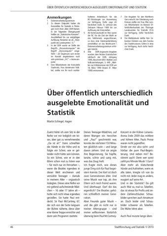 Über öffentlich unterschiedlich ausgelebte Emotionalität und Statistik Martin Schlegel, Hagen