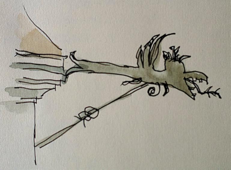 Im Hotel gelingt mir dann bei hereinbrechender Dunkelheit, ein Aquarell aus dem Fenster des Frühstücksraums heraus zu malen. Am besten gefallen mir die Wasserspeier oben an den Türmen. Bernd organisiert in der Zwischenzeit eine Flasche Wein. Der Abend ist gerettet.