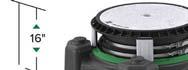 The cover adapter adjusts up to 5" and tilts 5 degrees in any direction to achieve any burial dimension and a perfectly flush-with-grade finish cover.