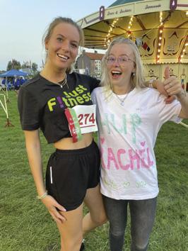 Deelnemer Rachel van Zwieten (Just Fitness Mijdrecht) liep de 12,4 km onder aanmoediging van beste vriendin Nikki Lamboo die haar Tshirt speciaal voor de gelegenheid had beschilderd met de tekst ‘Hup Rachel’. Rachel had het tijdens de loop zwaar maar werd door haar loopmaatje Andy Bakker er doorheen geholpen.