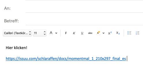6. schritt: Beliebigen Mailbrowser öffnen und mit Rechtsklick „Einfügen“ wird der Link in das Fenster kopiert. Den Text „Hier klicken!“ hinzufügen und an bestimmte Personen schicken.
