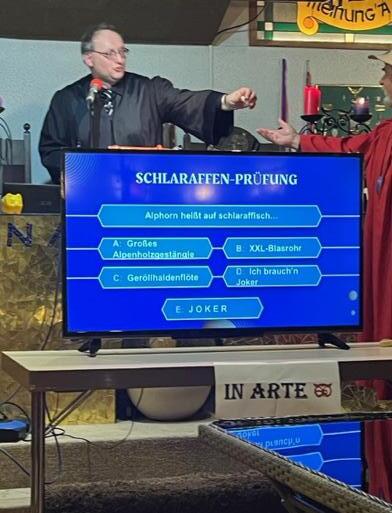 Nein, noch mehr von der Sorte hält Schlaraffia® nur schwer aus. Wir sind ein Querschnitt durch alle Berufe. Köche, Polizisten, Rentner, Musiker, Poeten, Beamte, Pfarrer, Versicherungsangestellte …