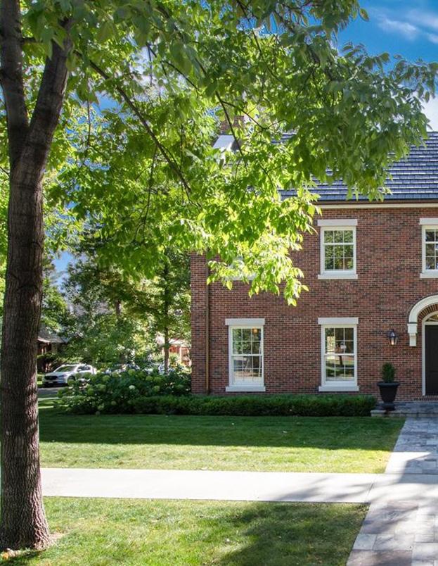This architectural gem is positioned on the corner of a lovely tree-lined street in the prestigious Country Club Historic District. Timeless and Classic Georgian style blends elegance and sophistication with quality craftsmanship. One of only five custom homes designed and built in Denver by architect Jeanne M.Cabral and Williamsburg Homes, the solid brick exterior, exacting symmetry and captivating dormer windows enclose an impressive, light-filled home that has been meticulously maintained. As you enter through the foyer, you will see a warm and cozy “library” complete with custom walnut paneling, built-in shelving/cabinetry and a gas fireplace. The living room has an expansive wood-burning fireplace, dentil crown mouldings and built-in cabinetry that continues into the stately dining room. A well—appointed eat-in kitchen with glazed white cabinets, corian counters, stainless appliances and designer tile is at the center of the home. Off the hallway you’ll find a powder room and bonus room that can be used for a pantry, storage, alternate laundry or mud room.The family room is large and comfortable with yet another beautiful wood-burning fireplace and plenty of space for casual entertaining. Venture upstairs where the second level hosts 4 bedrooms and 3 updated bathrooms including a primary suite that inspires relaxation and rejuvenation with a steam shower, jetted tub, dual vanities, designer tile and a walk-in closet. The dormer windows allow for plentiful storage and unique architectural details throughout the upper level. In the basement/lower level you will discover a 5th egress bedroom with adjacent bath, a spacious laundry room, rec/exercise room and a sizable work room with storage and work space. The landscaped and private yard offers a serene escape with gardens, trees, two brick patio’s-one covered and two flagstone patio areas - completely fenced with a combination of stucco, wood and wrought iron.