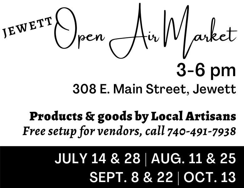 JEWETT OPEN Air Market 3-6pm Aug 25 - Sept 8,22 - Oct 13. 308 E. main St. Jewett Oh, Info 740-491-7938.