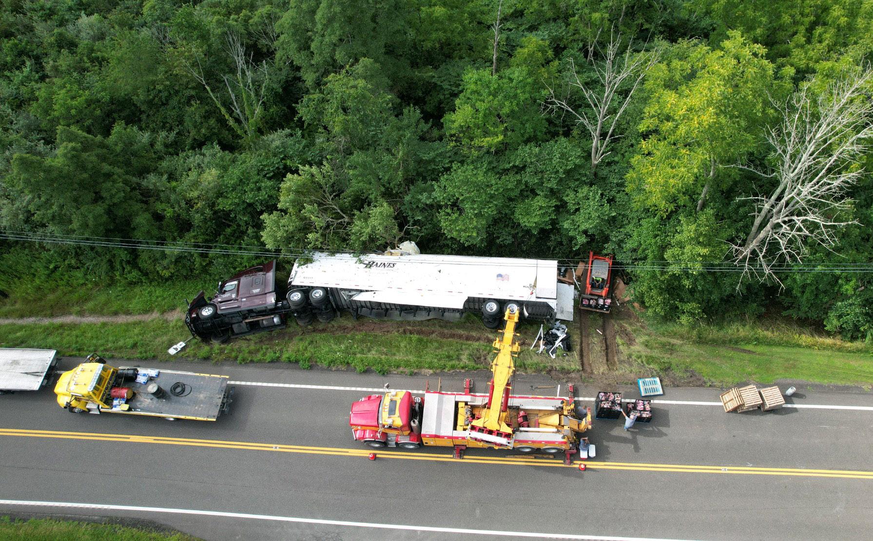 A tractor-trailer full of apples rolled over Sunday morning at 3:30 a.m. around mile marker 27 on State Route 22. Aerial photography provided by real estate & event drone photographer Eric Davies of 1 Eye Drone Works, 740-827-2327
