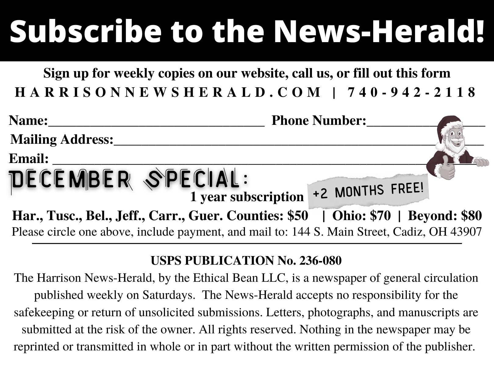 7 Harrison News-Herald | Saturday, December 17, 2022 Correspondence 740-942-3624 938 E. Market St. Cadiz