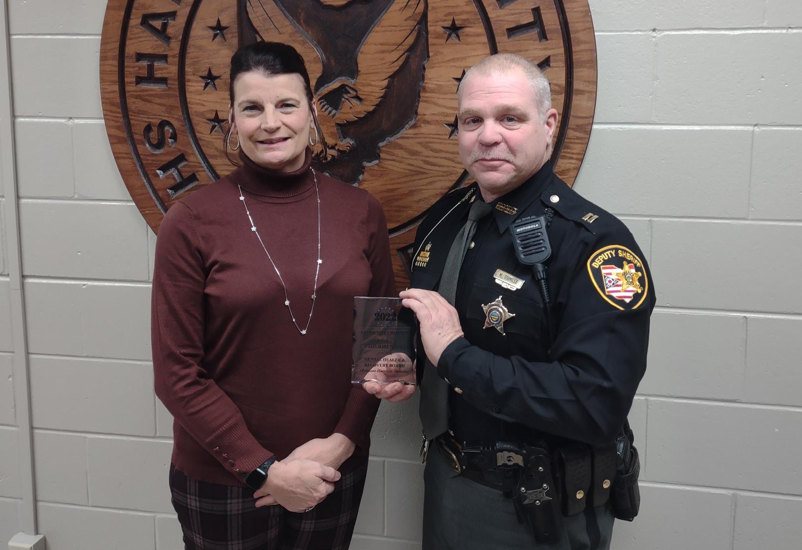 CADIZ—Captain Mark Touville of the Harrison County Sheriff’s Office was honored with the Community Champion Award from the Mental Health and Recovery Board, which serves Harrison, Belmont, and Monroe counties. The board wanted to recognize individuals who have made a difference in behavioral and mental health.