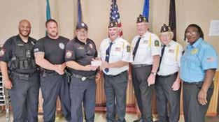 Officer Brandon Groves (from left), Lieutenant Ron Carter, and Chief Ryan McCann accept a donation from Legion Post 34 Commander Steve Keesye, Finance Officer Ed Long, First Vice Ed Heavener, and Legion member Eric Miller.