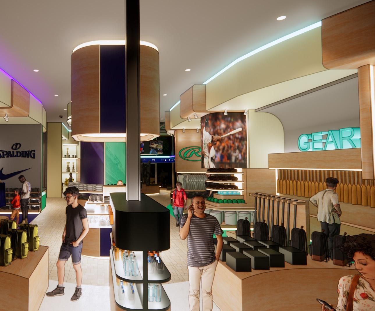 In each of the most popular US sports, the most memorable aspect revolves around an arcing form. In football, it’s a deep pass from the quarterback to the wide receiver. In baseball, it’s the towering home run blast from the hitter to the group of fans waiting in the outfield. In basketball, it’s the three-point shot from the shooter to the basket. Each of these sports displays a memorable parabolic form in one way or another. Customers will truly become immersed in each team’s identity to create an eccentric retail experience.