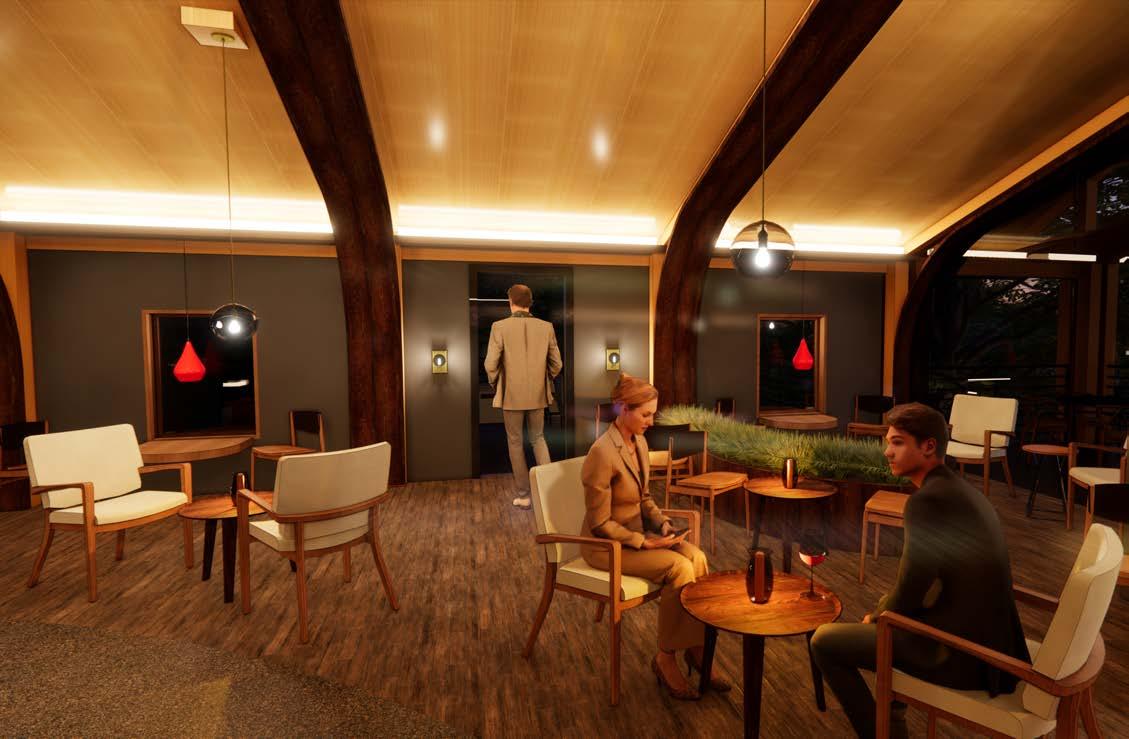 The detailed design decisions showcase the idea of the pouring process as well. The large chandelier form showcases a helix form which demonstrates the form of wine as it travels vertically. The ceiling detailing curves in multiple directions as it reaches the wine tasting volume, creating directionality towards the large architectural moves.