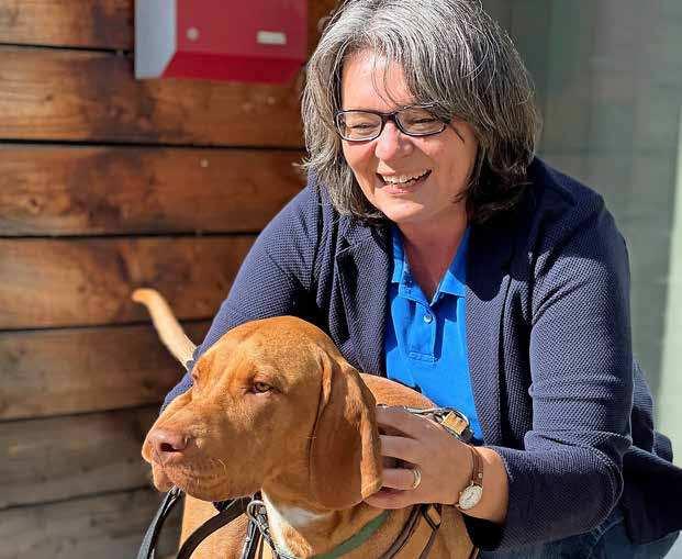 Wenn Köllner das Kommando „Schreddern“ ruft, darf er im Büro Kartons auseinandernehmen. „Meistens klappt das ganz gut, wir trainieren aber noch regelmäßig in der Hundeschule“, berichtet die 46Jährige. Wenn der MagyarVizslaWelpe gerade nicht im Blickfeld seiner Besitzerin ist, macht er sich ab und zu an wichtigen Unterlagen oder Ord nern zu schaffen. „Deshalb ist es manchmal richtig anstrengend mit ihm“, meint Köllner. Doch trotz des gelegentlichen Schabernacks beobachtet sie schon nach wenigen Wochen positive Verände rungen im Team. Dazu gehört zum Beispiel, dass Oskar sich bei Gesprächen als Eisbrecher erweist: „Wenn unsere Mitarbeiter den Hund streicheln, erzählen sie schon mal private Dinge, über die sie früher kein Wort verloren hätten“, sagt Köllner. Auch ihr Alltag hat sich durch den Hund verändert: Ihre Mittagspausen verbringt sie jetzt regelmäßig an der frischen Luft und geht eine Runde im Wald spazieren: „Das tut mir gut und entstresst mich.“