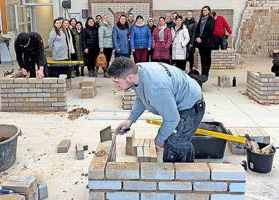 In der Bauhalle sahen die Frauen den angehenden Maurern
