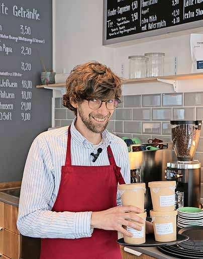 frische Blätter für die Farbe und den Geschmack dazugegeben. „Auf das Eis freuen sich schon viele“, betont der 42-Jährige. Das gilt auch für die Rhabarbersaison, die im Mai beginnt. Doch heute wird in der Eisküche zunächst das Vanilleeis in Portionsschalen abgefüllt, das ein Restaurant bestellt hat. Etwa acht bis zehn Kilo Eis gibt Rakowskis Maschine pro Gefriervorgang aus – im Vergleich zu großen Eisproduzenten sei das relativ wenig. Zum Abschluss dürfen wir noch aus den zwölf Sorten wählen und entscheiden uns für Zimtschnecke, Mohn und Joghurt-Heidelbeere. Rakowski portioniert jedes Eis mit einem Löffel in kleine Becher – so passen in diese Portion drei Geschmacksrichtungen. „Wir wollen Raum zum Probieren lassen“, erklärt er sein Konzept. Knapp 150 Gramm bringt unser Eis der Wahl auf die Waage. Und natürlich genießen wir den Moment und lächeln dabei – denn es schmeckt einfach lecker. MARTINA JAHN W