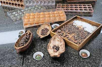 MitAusdauerzuinternationalerBeachtung Die metallenen Regale in den Produktionsräumen sind voll mit Zutaten und Formen für die Pralinen. Nele Marike Eble und ihr vierköpfiges Team produzieren das ganze Jahrüber–sowohlfürihrenOnline-Shopals auchaufKundenanfragenundfürdieSterneGastronomie deutschlandweit. Seit 2017 hat Eble mit ihren Pralinen schon einige Preise gewonnen. Bei den International Chocolate
