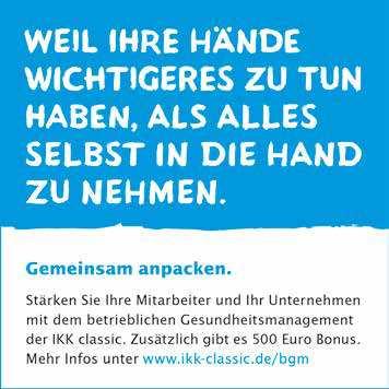 Neugierig?Testbetriebesindwillkommen Mittlerweile ist das Projekt in derTestphase angekommen:„HierliefernunsdieBetriebe wertvolleInformationen“,betontStorck.Was funktioniert?Wohaktes?Wielassensichdie Lösungen tatsächlich im Alltag umsetzen? Schließlich soll die Plattform auch echte Erleichterung bringen und genutzt werden. AnfangkommendenJahreswerdeeserste vorzeigbare Ergebnisse geben, verspricht Storck. Für alle, die bereits jetzt mehr wissen wollen, gibt es die Möglichkeit, sich als Testbetriebzumelden.InteressierteBetriebe können sich per E-Mail an ihn bei Wirsindhandwerk.de wenden. KATHARINAWOLF W