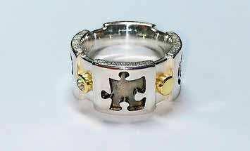 Gut 22 Gramm schwer und 12 Millimeter breit: Goldschmiedemeisterin Petra Marklein-Paas hat diesen Ring zu Ehren von Stephan Weil, Niedersächsischer Ministerpräsidenta.D.,angefertigt.DievierSymbole–dieRose,dasKleeblatt,der BergunddasPuzzleteil–charakterisierenWeilausSichtderHandwerkerin.Alle SymbolehatsieperHandausgesägt.„DaswarmirfürdiesenAuftragbesonders wichig“, sagt Marklein-Paas. Bewusst gewählt hat sie zudem einen Diamanten, derStärkeundKlarheitsymobilisiere.DerRubinstehefürHerzblut,dasWeilin seinWirkeneingebrachthabe.DergrößteMomentseigewesen,dassderRingbei der Übergabe auch passte. Denn eine Anprobe habe es nicht gegeben.(JA)