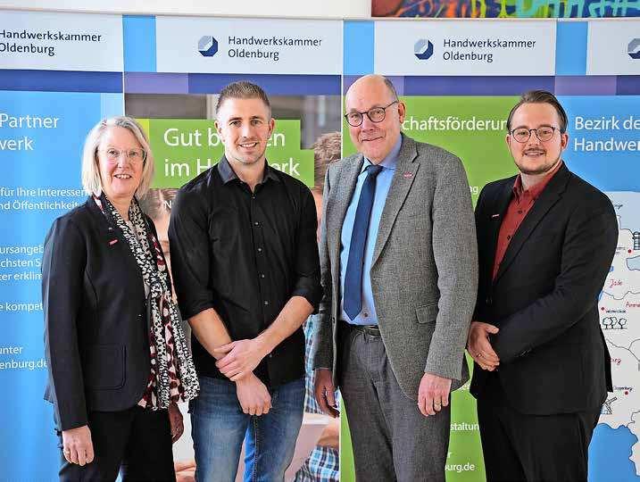 Eckhard Stein, Präsident der HandwerkskammerOldenburg,gratuliertespezielldenregionalenTalenten. „Ihre Leistungen sind eine hervorragende Basis für die nächsten Karriereschritte imHandwerk.“Steinzeigtesicherfreut,dassdie Junghandwerkerinnen und Junghandwerker in dieser Hinsicht schon konkrete Ziele in Angriff genommenhabenoderkurzdavorstehen.„Wenn Sie das hier gezeigte Engagement weiter an den Tag legen, dann werden Sie es weit bringen“, so der Kammerpräsident. Um den jungen Handwerkerinnen und Handwerkern auch im digitalen Raum mehr Sichtbarkeit zu geben, stellte Cehan San als einer der diesjährigen Markenbotschafter des Kongresses „Zukunft Handwerk“ praxisnahe Impulse und digitales Werkzeug für die Kom-