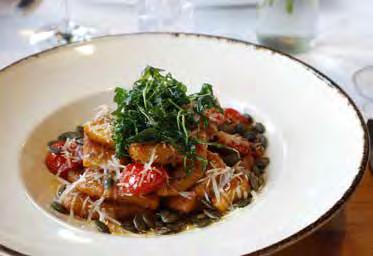 So wie das Lokal ist auch Anjas Kochkunst: „Bei uns bekommen die Gäste traditionell-deftige Gerichte, aber genauso moderne und leichte Speisen.“ Ihre Zutaten bezieht sie vorwiegend aus der Region und verarbeitet so automatisch Obst und Gemüse der aktuellen Jahreszeit. Manches sammelt sie im Wald oder erntet es im heimischen Garten wie Rhabarber, Salat, Gurken und Äpfel. „Im Frühling pflücke ich mit meiner Mama Bärlauch und mache daraus Gnocchi oder Ravioli mit Bärlauchrahm. Im Sommer habe ich gerne Spargel in allen Variationen auf der Karte, im Herbst Kürbis und Pilze. Im Winter kaufe ich Wild in der Nachbarschaft und serviere es mit unterschiedlichen Kohlsorten.“