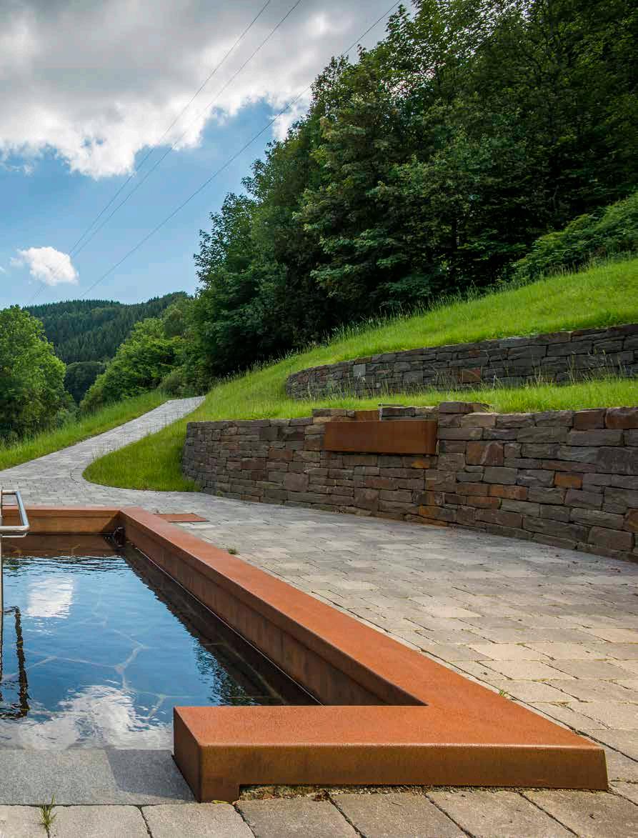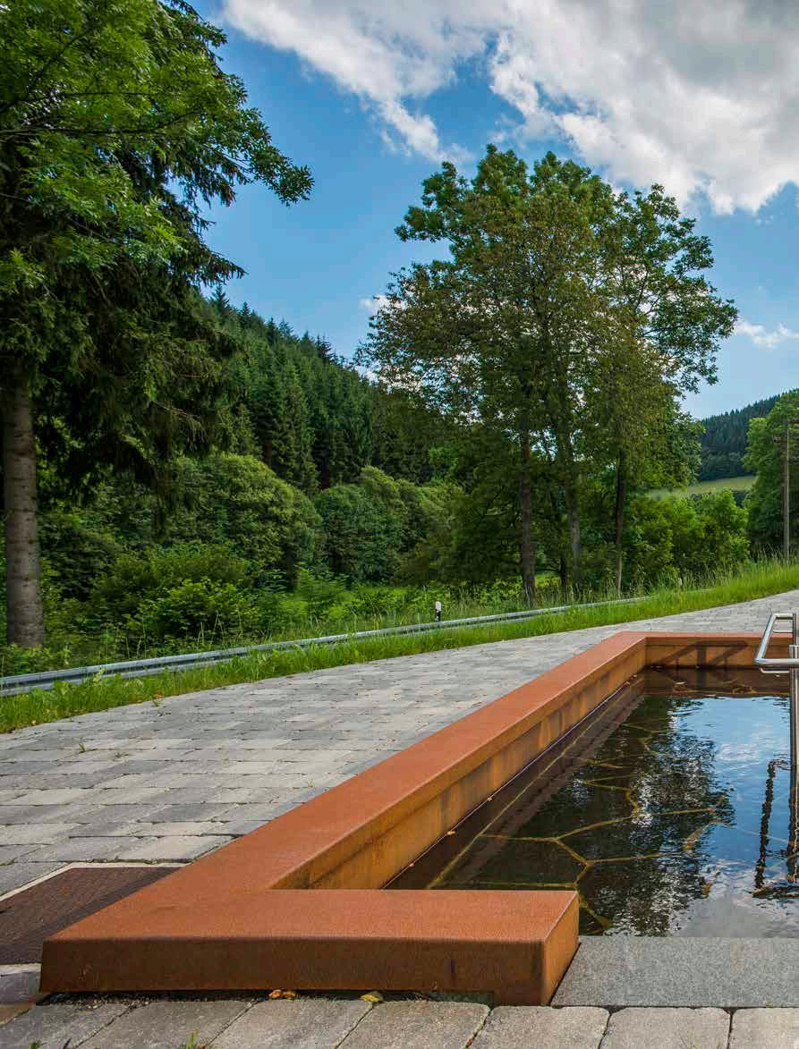 Zusammen mit seinem 18-köpfigen Team plant und baut Thorsten Salamon Projekte auf öffentlichen Flächen und schafft Gartenparadiese für Hotelgäste und private Auftraggeber, wie sie unterschiedlicher nicht sein könnten. Von der naturnah gestalteten Oase bis zum großen Hotelrefugium mit Teichen und Bachläufen gibt es fast keine Grenzen, oder? „Da spielen ganz viele Faktoren eine Rolle. Aufgrund der Topografie unserer Mittelgebirgsregion sind die Grundstücke nie ganz eben, der Boden im Untergrund oft felsig, und bei