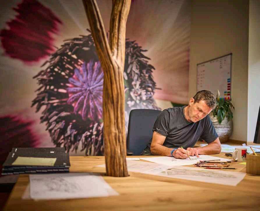 Thorsten Salamon ist ein kreativer Gestalter und jedes Projekt komplettes Neuland. Für seine Arbeit sammelt er Informationen wie ein Journalist: Er interviewt seine Kunden auf Wünsche und Bedürfnisse, prüft die Bedingungen vor Ort, überlegt, welche Elemente, Materialien, Formen und Pflanzen infrage kommen, und gibt dann seinen Ideen mit Stift und Papier Flügel. „Gärten sind immer das Aushängeschild eines Hauses. Ich möchte beides zum Glänzen bringen.“ Wenn das Fundament dafür gelegt ist, dauert es noch bis zu zwei Jahre, bis die eigentliche Idee von Thorsten zu sehen ist.