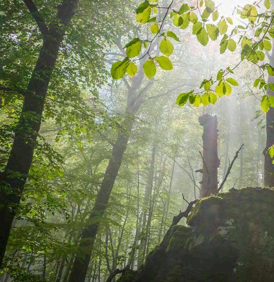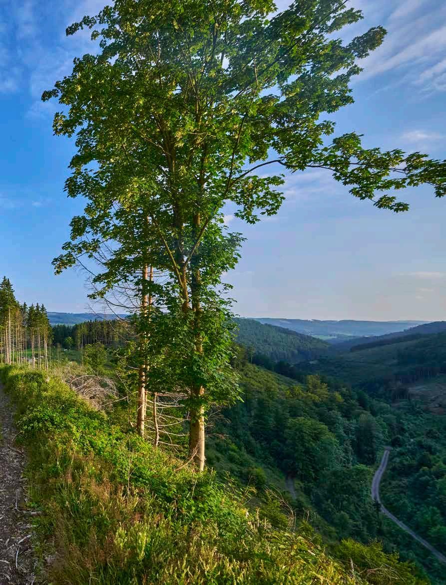 zu 45 aus Nadelholz. Immer noch ist die Fichte die häufigste Baumart, dicht gefolgt von der Buche, hinzu kommen unter anderem Lärche, Douglasie, Küstentanne, Kiefer, Bergahorn und Wildkirsche.