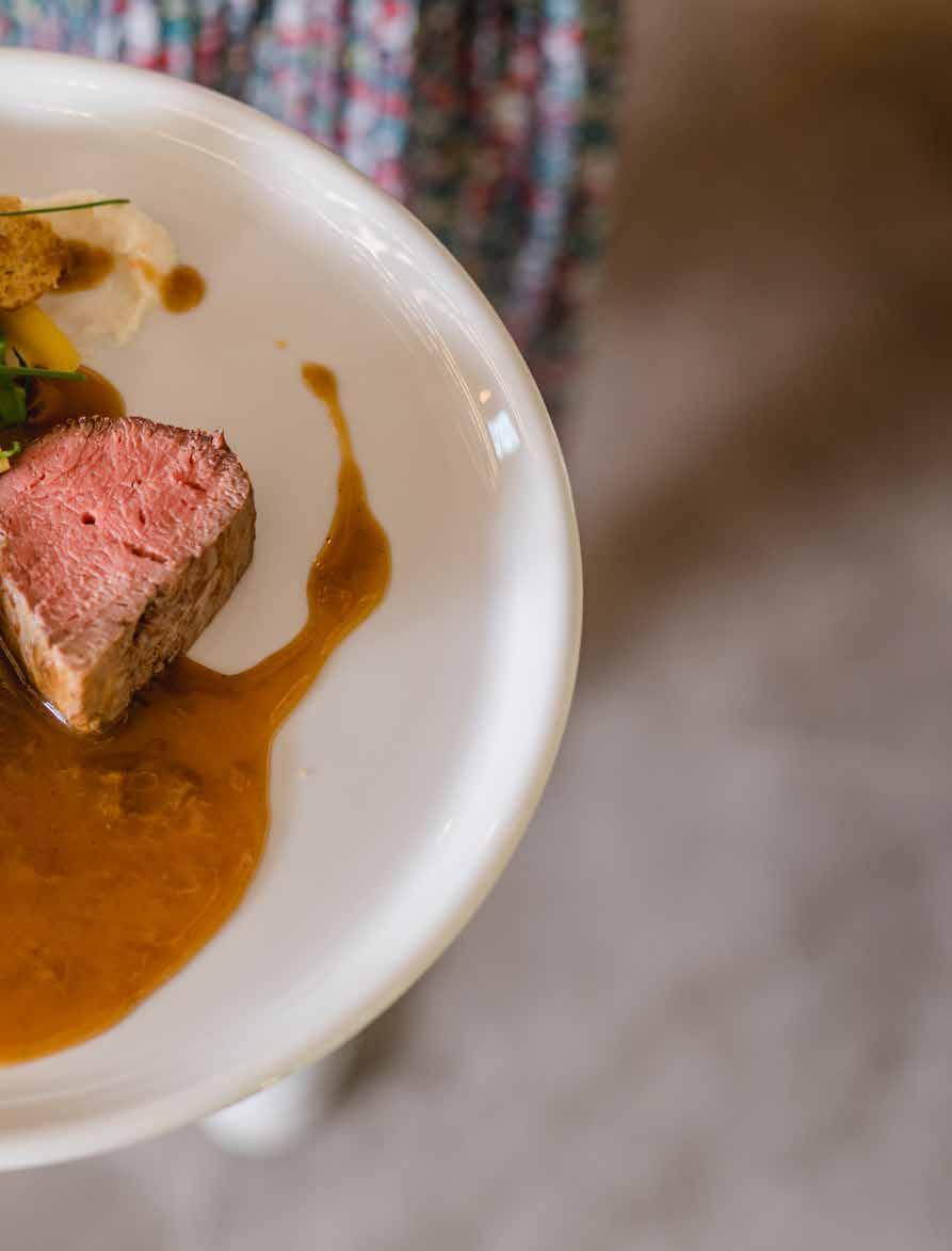 Einmal pro Monat wechselt die Karte, auf der immer auch vegetarische und vegane Gerichte stehen. „Da können wir mehr spielen als bei den Klassikern, aber auch bei denen bringen wir neue, außergewöhnlichere Komponenten ein.“ Gemeinsam mit Koch Thomas Stratmann experimentiert sie gerne in der Küche, Geuekes Lieblingsplatz ist übrigens der ehemalige Stall, in dem einst die 60 Kühe ihres Vaters standen. Als Chefin macht sie vom Einkauf bis zum Service alles, doch am liebsten arbeitet sie hinter den Kulissen.