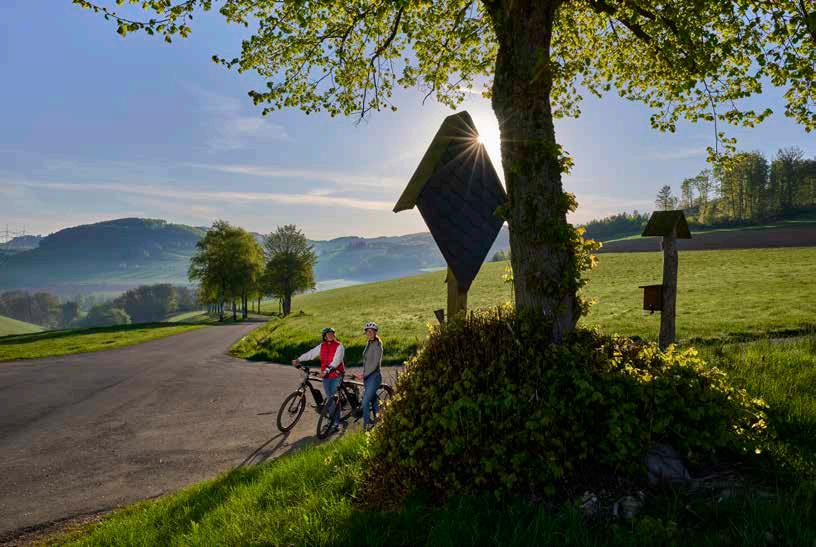 Wer so mitten am Puls der Natur lebt und lauscht wie die Menschen in der Region, erlebt ihren Wandel ganz intensiv. Im Frühjahr erwacht das Leben auf den Wiesen und Wäldern, die Kälte weicht, die Luft riecht frisch und die Vögel zwitschern um die Wette. Draußen vor den Fachwerkhäusern wird gewerkelt, Fahrradreifen werden aufgepumpt und die Wege für Spaziergänger und Wanderer bereit gemacht. Wärme, Licht und noch mehr Lebensfreude bringt die Sommersonne. Der Fingerhut zaubert violette Märchenwiesen, Himbeeren wandern in den Mund und am Abend wird der Grill angemacht. Es ist die Zeit der Begegnungen, denn die Menschen lieben ihre vielen Feste, vor allem das