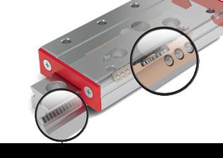 MINISLIDE MSQscale sind spielfrei vorgespannt. In Kombination mit der hohen Anzahl Rollkörper ist eine sehr hohe Systemsteifigkeit und somit höchste Präzision garantiert.