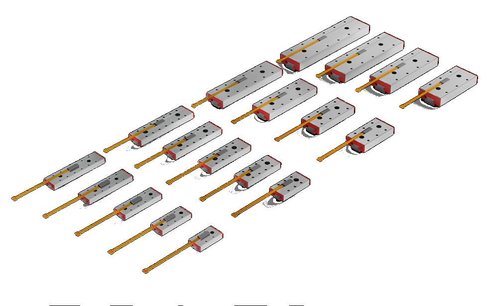 7, 9, 12 and 15 mmのレール幅があり、タイプに応じて4つまたは5つの異なる長さとストロ ークが選べます。