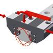 (Fig. 10) Le guide lineari influiscono in modo significativo sulla rigidità totale di una macchina utensile. MONORAIL MR è in grado di garantire elevata rigidità grazie all’impiego di rulli con profilo convesso come corpi volventi, nonché attraverso le sezioni ottimizzate del carrello e della rotaia.