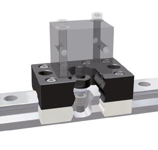 (Fig. 4) La guida a sfere MONORAIL BM di SCHNEEBERGER, realizzata con pochi ma razionali componenti, presenta eccellenti proprietà dinamiche di funzionamento ed offre innumerevoli vantaggi commerciali. L’esiguo numero di passaggi nella geometria delle piste permette un rotolamento silenzioso ed omogeneo, pulsazioni minime, bassi valori d‘attrito, nonché elevate velocità di traslazione. Il profilo trapezoidale della guida assicura un’alta rigidità del sistema e nello stesso tempo una considerevole riduzione dei tempi di manutenzione, dato che i tergipista supplementari possono essere sostituiti senza smontare i carrelli. La perfetta protezione dei carrelli è garanzia di massima affidabilità e lunga durata.