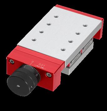 Les tables de positionnement NH se compose d’une partie supérieure et d’une partie inférieure carrées. Elles sont équipées avec des guidages linéaires, type R2-RF. Leur forme permet de les assembler aisément pour optenir une table a mouvement croisés. Le déplacement est commandé par vis micrométrique avec rappel par ressort contre la vis.
