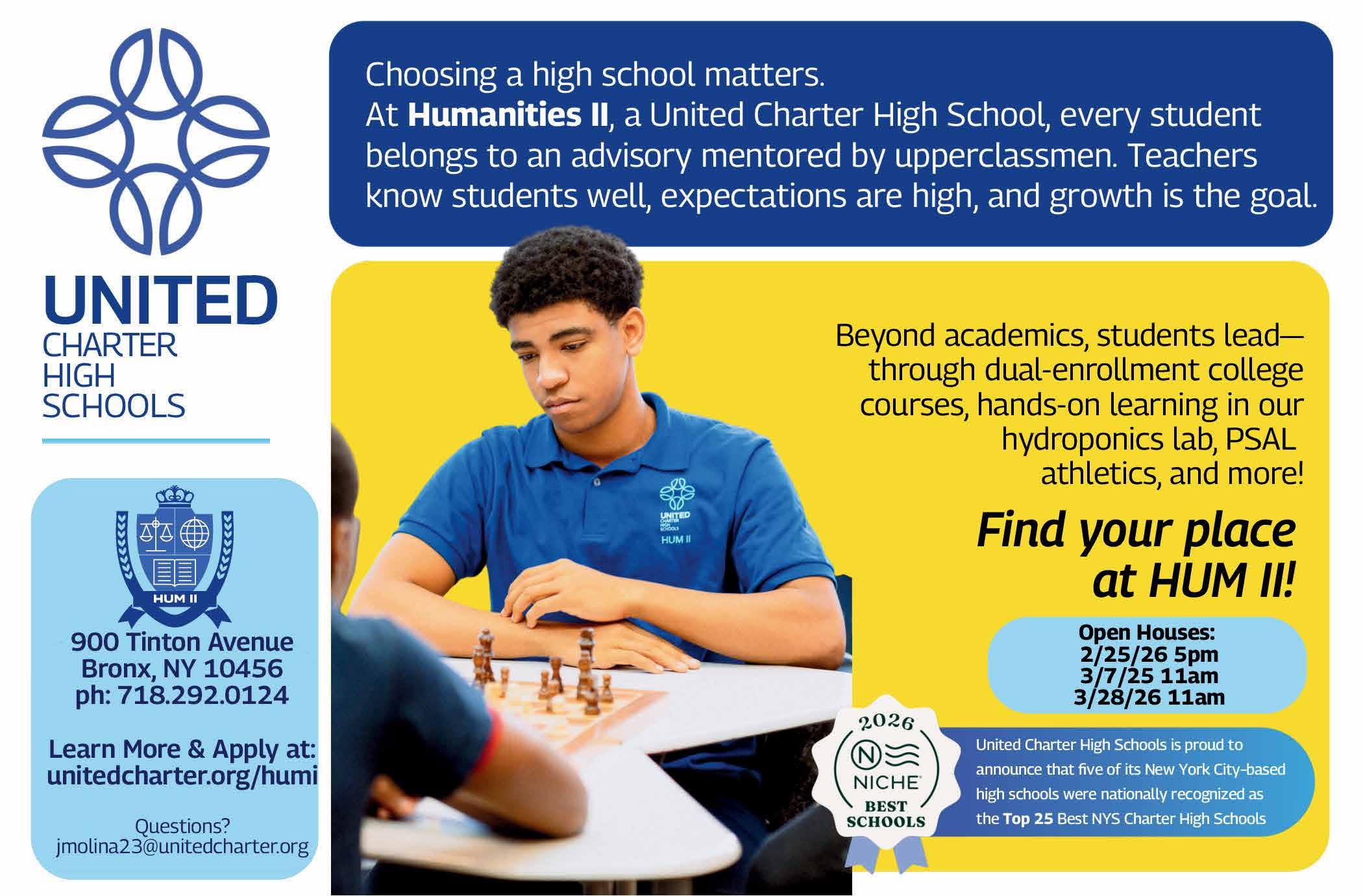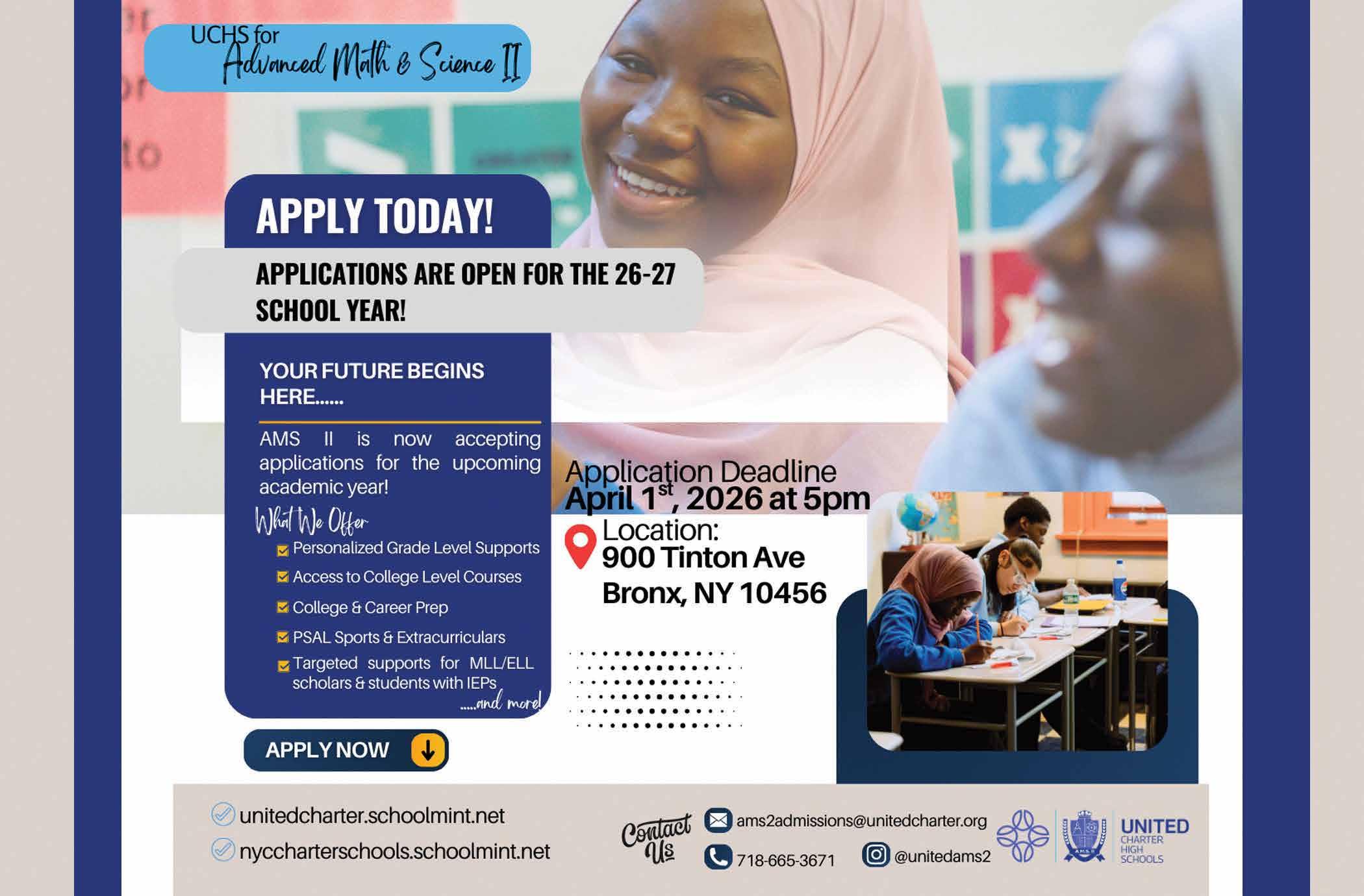 Atmosphere Academy is a free public charter middle and high school serving grades 6 to 12 across five campuses in the Bronx.