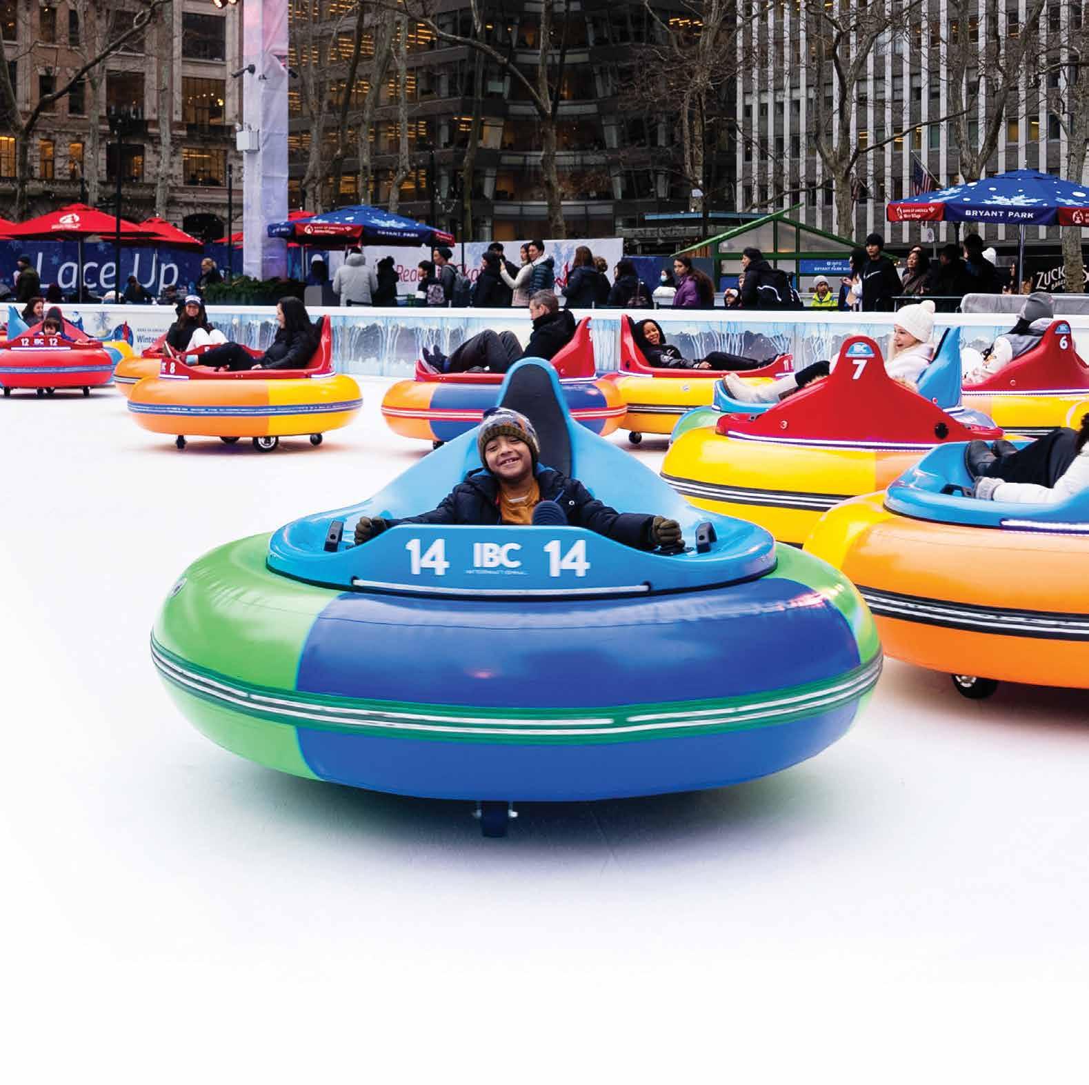 Growing up a city kid in Brooklyn, one of my favorite summer memories was the bumper cars on Coney Island. Now, kids and adults, too, can make a possibly more fun memory right in the middle of Midtown. If you haven’t been able to yet, the bumper cars on ice at Bank of America Winter Village in Bryant Park are still happening until the end of this month.