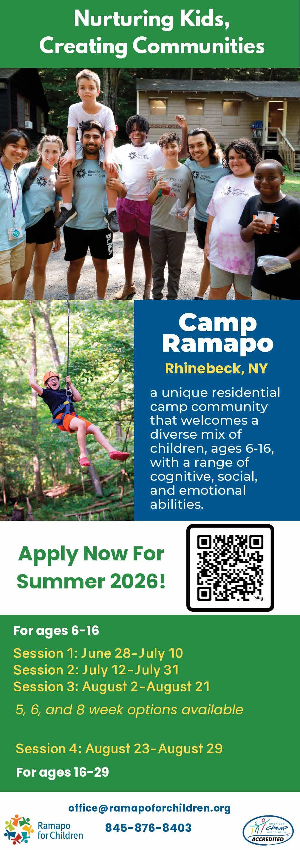 Every summer, Camp Ramapo serves over 500 youth with social and emotional challenges and developmental disabilities on their beautiful Rhinebeck campus. Ramapo provides an opportunity for campers with a wide range of needs to experience success. They offer a unique camp community of a diverse mix of children and young adults with a broad range of abilities and a safe, nurturing environment that promotes independence, self-confidence, and social skills.