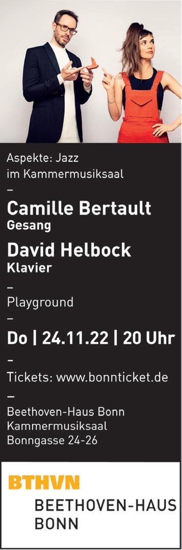 3 19:30 Das vorweihnachtliche BonnerRudelsingen Mitsingkonzertpräsentiertvon David Rauterberg & Matthias Schneider. Eintritt: VVK14,-/12,- D Pantheon, SiegburgerStr. 42