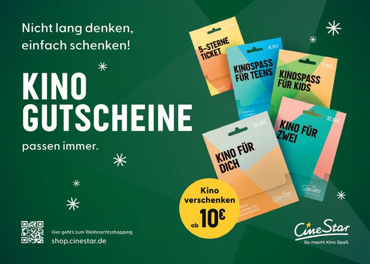 Mobile Energie zu Weihnachten! Fürnur18,– € bekommstDu die Schnüss fürein Jahrdirektnach Hause. Ja, ich will die Schnüss ein Jahrlang für18,- € frei Haus. Das Abo kann innerhalb einerWoche widerrufen werden. Es verlängertsich um ein Jahr, wenn es nichteinen MonatvorAblauf gekündigtwird. Name, Vorname Straße, Nr. PLZ, Ort Den Betrag von 18,- € zahle ich per: Überweisung Empfänger: Verein z. Förderung alternative Medien IBAN: DE35 3705 0198 0000 0256 84, Sparkasse Köln/Bonn. Verwendungszweck: NEU-ABO. Absendernichtvergessen! Bankeinzug DerBetrag darf bis auf Widerruf von meinem Konto abgebuchtwerden: Kontoinhaber Geldinstitut IBAN Datum, Unterschrift Bitte abschicken an: Schnüss Abo-Service · Blücherstraße 28 · 53115 Bonn Tel. (0228) 60476 - 0 · Mail an: abo@schnuess.de ...DANN SUCHT DIE SCHNÜSS DICH! KEINE LUSTDIE SCHNÜSS ZU SUCHEN? Abo 2022-12 DEZEMBER · 12 | 2022 VERANSTALTUNGSKALENDER · 61 2022 | 12 · SCHNÜSS