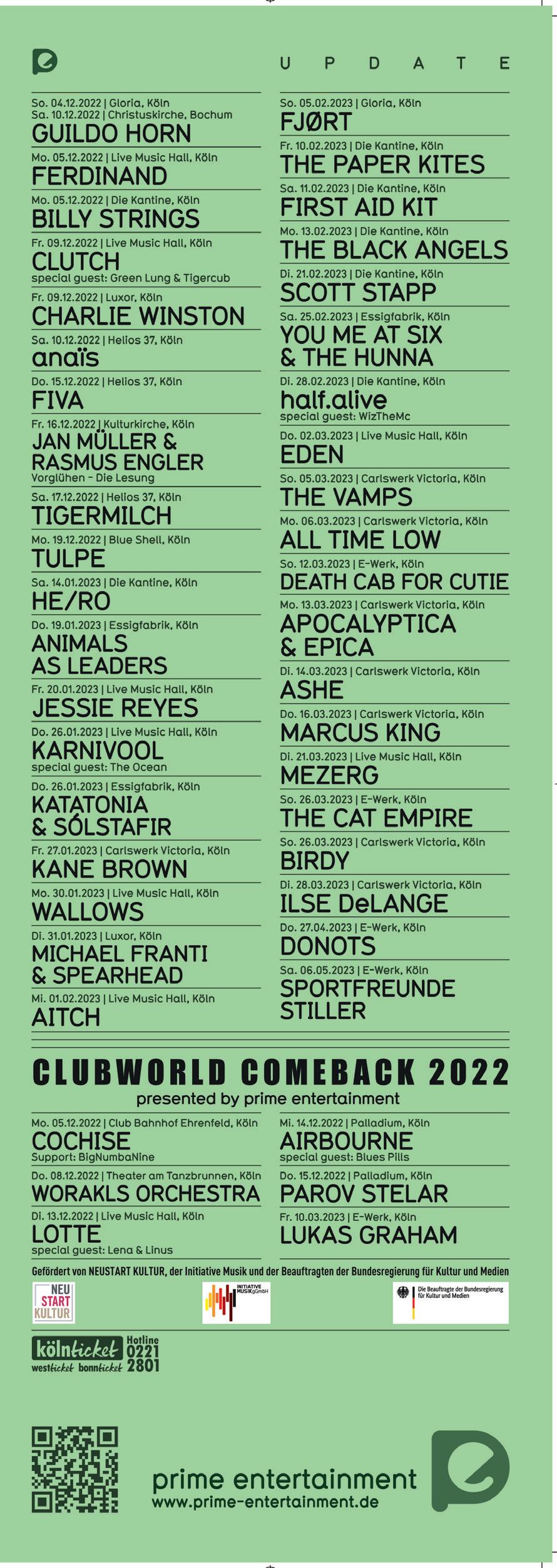 21:00 Uhr D Köln, Sonic Ballroom 29. Donnerstag KONZERT