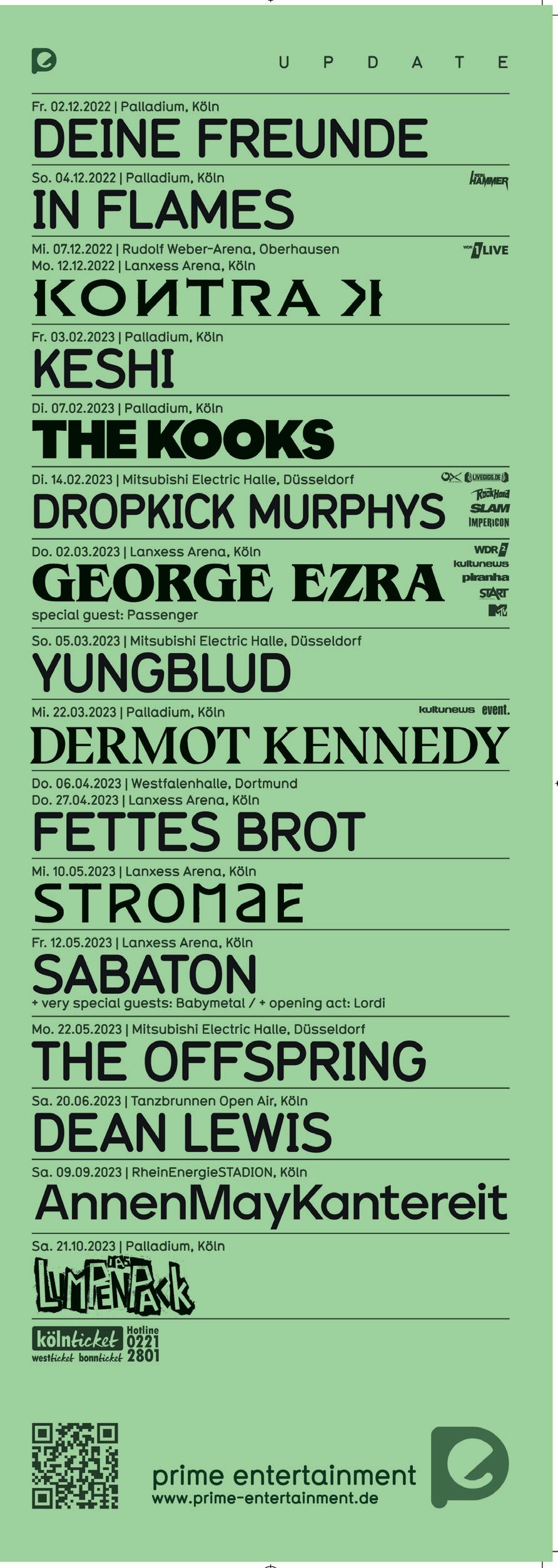 3 21:00 Irish Handcuffs Punkrock. Support: Bellyacher& Astronuts. Eintritt: 8,- D Sonic Ballroom, Oskar-Jäger-Str. 190