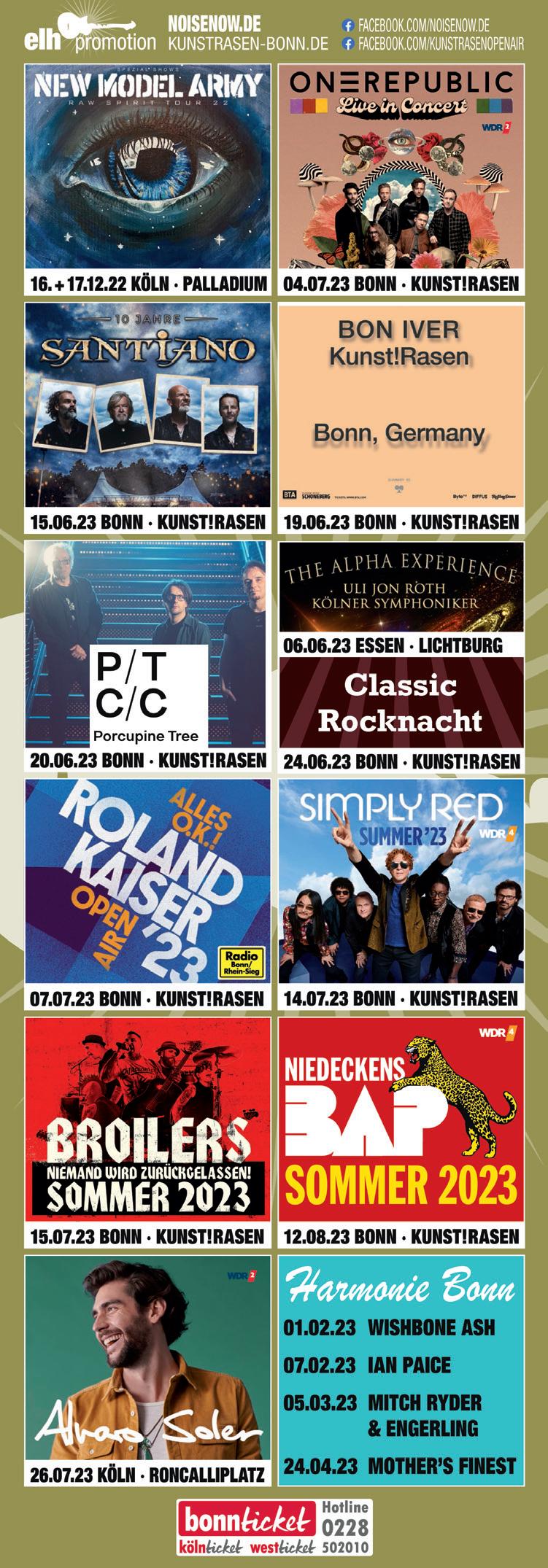 3 16:30 Onkel Fisch - »WDR2 Zugabe Pur- Jahresrückblick2022« DieserJahresrückblickistanders, denn die beiden BewegungsfanatikerAdrian Engels und Markus Riedingerpräsentieren 365 Tage in 90 atemlosen Minuten. Eintritt: VVK36,90/31,10 D Haus der Springmaus, Frongasse 8-10
