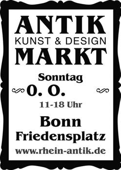 3 11:00 Rhein-Antik-Markt Antik-, Kunst- & Designmarktvon 11-18 Uhr. D Marktplatz, Siegburg